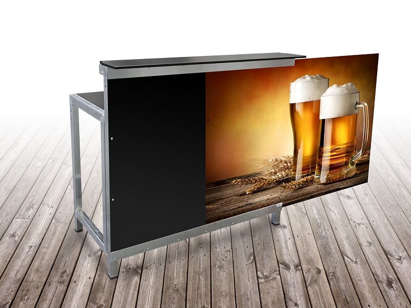 Mit unserer mobilen Bartheke haben Sie eine robuste und stilvolle Bar für Ihre Veranstaltung. Sie zeichnet sich durch Ihren einfachen und schnellen Aufbau und Ihre nahezu grenzenlosen Erweiterungsmöglichkeiten aus.