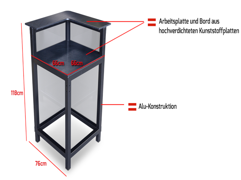 Auf Anfrage können Sie ein Inneneckblech und LED Beleuchtung dazumieten. Sprechen Sie uns dazu einfach an!